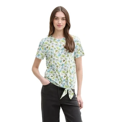 TOM Tailor Denim KNOT Print Tshirt, Women's, Size: Small, White/green/blue