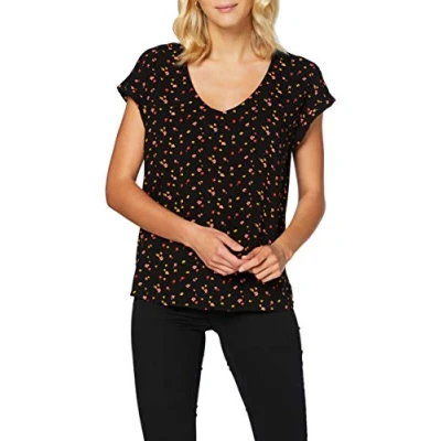 TOM TAILOR Denim Ladie's 1020980 Patterned Short Sleeve Tunic Blouse, 24230 Black Red Flower Print, M