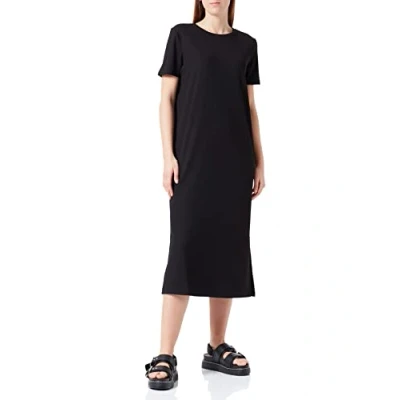 Simple, short-sleeved T-shirt dress with fine ribbed structure, side slits on the hem and crew neck Fit: regular fit, dress length for size M approx. 120 cm Ideal for occasions: casual, party, club, birthday, confirmation, communion, wedding, christening, prom, business, office, holiday, beach, hiking, Christmas, New Year's Eve, concert With easy-care, soft polyester fibres, elastane part for a perfect fit Be Part: The item contains at least 20% recycled polyester, waste such as PET bottles are used in the production, the conversion of the waste into a new resource protects natural resources and consumes less water and energy. Washing instructions: do not dry clean, do not tumble dry, do not bleach, do not iron, normal wash at max. 30 C