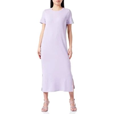 Simple, short-sleeved T-shirt dress with fine ribbed structure, side slits on the hem and crew neck Fit: regular fit, dress length for size M approx. 120 cm Ideal for occasions: casual, party, club, birthday, confirmation, communion, wedding, christening, prom, business, office, holiday, beach, hiking, Christmas, New Year's Eve, concert With easy-care, soft polyester fibres, elastane part for a perfect fit Be Part: The item contains at least 20% recycled polyester, waste such as PET bottles are used in the production, the conversion of the waste into a new resource protects natural resources and consumes less water and energy. Washing instructions: do not dry clean, do not tumble dry, do not bleach, do not iron, normal wash at max. 30 C