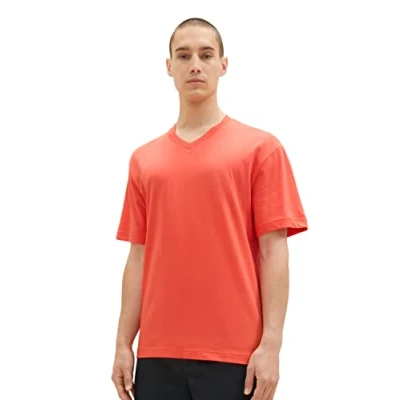 TOM TAILOR Denim Men's 1036449 Relaxed Fit V Neck T Shirt, 11042 Plain Red, S