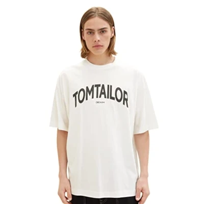 TOM TAILOR Denim Men's 1036452 Photo Print T Shirt, 12906 Wool White, L