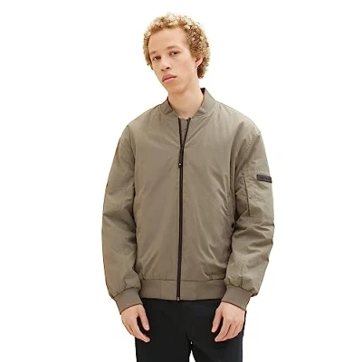 TOM TAILOR Denim Men's 1037382 College Bomber Jacket with Water Repellent Function, 10415 dusty Olive Green, L