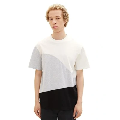 TOM TAILOR Denim Men's 1037671 Relaxed fit t Shirt with cutline Pattern, 12906 Wool White, L
