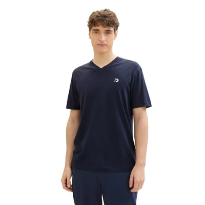 TOM TAILOR Denim Men's 1042404 Basic Cotton V Neck T Shirt, 10302 Dark Blue, XS
