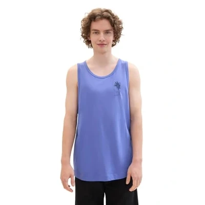 TOM TAILOR Denim Men's 1043178 Summer Tank top with Palm Tree Motif, 30104 Blueberry Blue, L