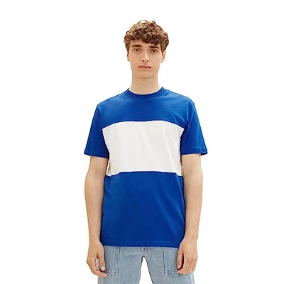 TOM TAILOR Denim Men's Basic T Shirt with cutline Style, 14531 shiny Royal Blue, L
