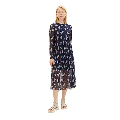 Patterned, long-sleeved maxi dress made of mesh material for a semi-transparent look on the sleeve, with ribbed cuffs at the round neckline and pleats at the waist for an optimal a-line Fit: slim fit, maxi length, dress length in size M approximate 121 cm Ideal for the following occasions: leisure, party, club, birthday, confirmation, communion, wedding, christening, prom, business, office, vacation, beach, christmas, new year's eve, concert With easy-care polyester fibers Washing instructions: do not dry clean, do not tumble dry, no bleach allowed, iron at low temperature (110°C), machine wash max 30°C