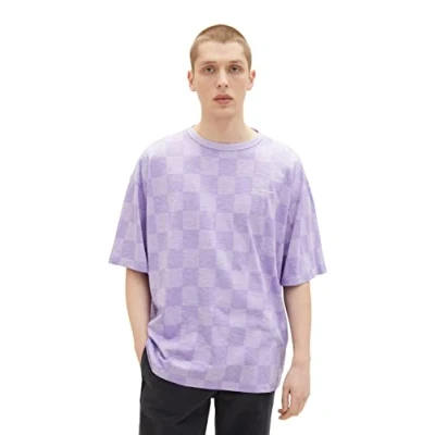 TOM TAILOR Denim Men's T Shirt 1035603, 31393 Lilac Vibe Check Print, L