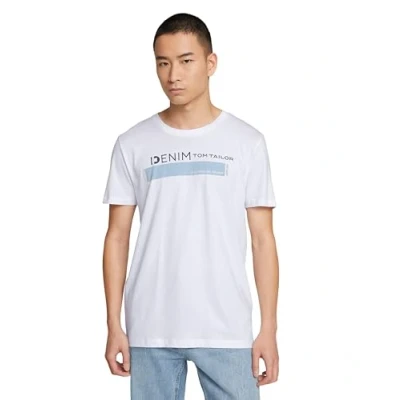 TOM TAILOR Denim Men's T Shirt with Logo Print 1030693, 20000 White, XL