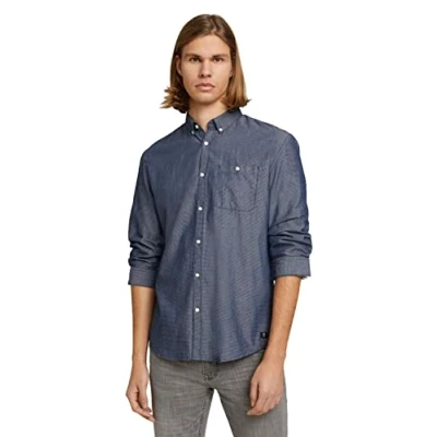 TOM TAILOR Denim Men's Textured Shirt 1024719, 26434 Navy White Dobby Structure, M