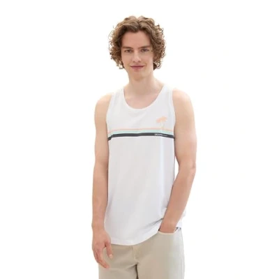 TOM TAILOR Denim Men's 1042073 Summer Tank top with Logo Print, 20000 White, S