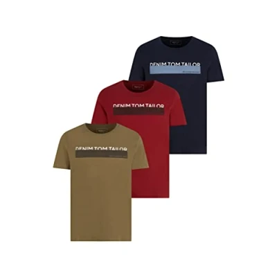 TOM TAILOR Denim Men's Triplepack T Shirt with Print 1034860, 11279 Dry Greyish Olive, XXL