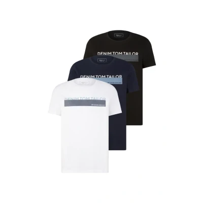 TOM TAILOR Denim Men's Triplepack T Shirt with Print 1034860, 29999 Black, XL