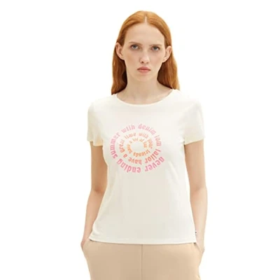 TOM TAILOR Denim Women's 1036532 T Shirt with Print, 10348 Gardenia White, Large