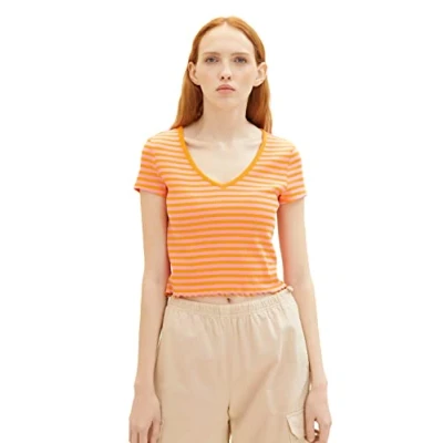 TOM TAILOR Denim Women's 1036538 T Shirt with Ribbed Structure and Pattern, 31709 Mango Pink Stripe, M