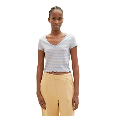 TOM TAILOR Denim Women's 1036538 T Shirt with Ribbed Structure and Pattern, 31710 Mid Blue Sand Stripe, M