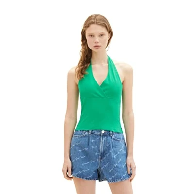 TOM TAILOR Denim Women's 1037246 Basic Halter top, 17327 Vibrant Light Green, XXL
