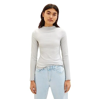 TOM TAILOR Denim Women's 1038368 Basic Ribbed Long Sleeve Shirt, 32253 Light Grey, XL
