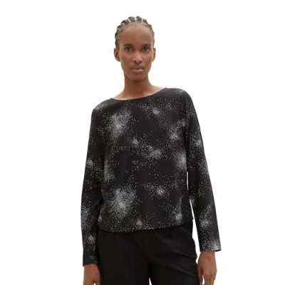 TOM TAILOR Denim Women's 1039359 Blouse, 34011 Black Sparkle Print, S