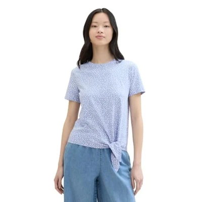 TOM TAILOR Denim Women's 1040186 T Shirt, 35325 Mid Blue Minimal Print, S