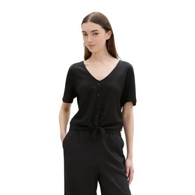 TOM TAILOR Denim Women's 1041452 Basic Blouse Shirt with Knot Detail, 14482 Deep Black, XL