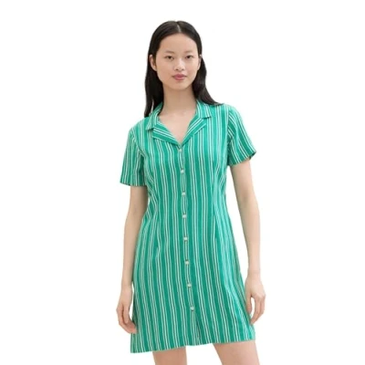 TOM TAILOR Denim Women's 1042008 Basic mini Shirt Dress with Stripes, 35335 Green White Vertical, M