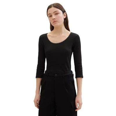 TOM TAILOR Denim Women's 1042249 T Shirt, 14482 Deep Black, XS