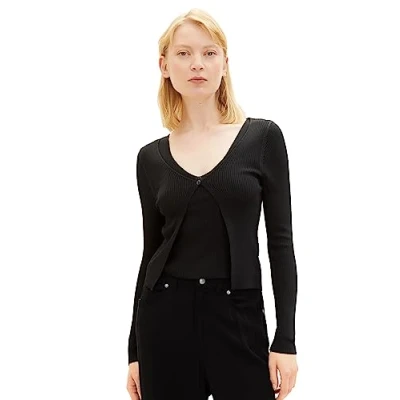 TOM TAILOR Denim Women's 2 in 1 Cardigan & Top, 14482 deep Black, L