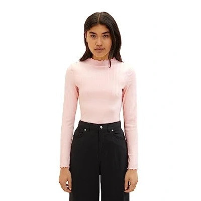 TOM TAILOR Denim Women's Basic Ribbed Long Sleeve Shirt, 14557 light English Rose, XXL
