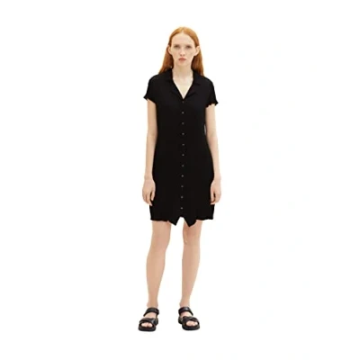 TOM TAILOR Denim Women's mini Dress with Button Placket and Collar, 14482 Deep Black, XXL