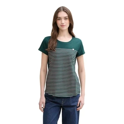 TOM TAILOR Denim Women's Striped T shirt with heart print 1012686, 18815 Green Rose Stripe, XS