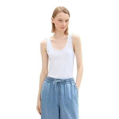 TOM TAILOR Denim Women's 1042795 Ruffle Detail Tank Top, 20000 White, XL