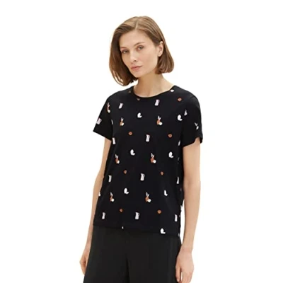 TOM TAILOR Ladie's 1035378 T Shirt, 31886 Black Vase Design, XS