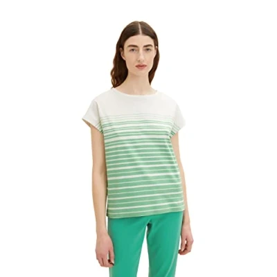 TOM TAILOR Ladie's 1035480 T Shirt, 31329 Green Gradient Stripe, XXL