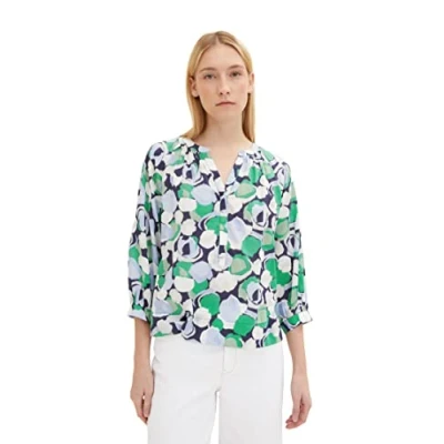 TOM TAILOR Ladie's 1035880 Blouse, 31572 Green Flower Design, 34