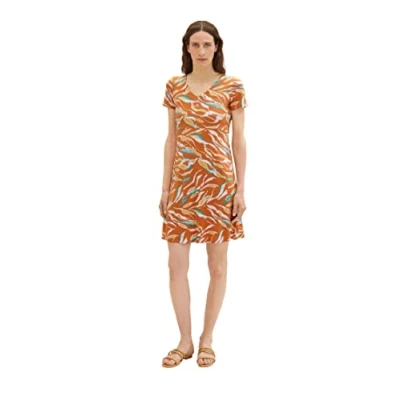 TOM TAILOR Ladies Dress 1035234, 31758 Brown Abstract Leaf Design, 38