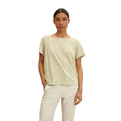 TOM TAILOR Ladies T Shirt with All Over Print 1031225, 29550 Green Offwhite Leaf Design, Small
