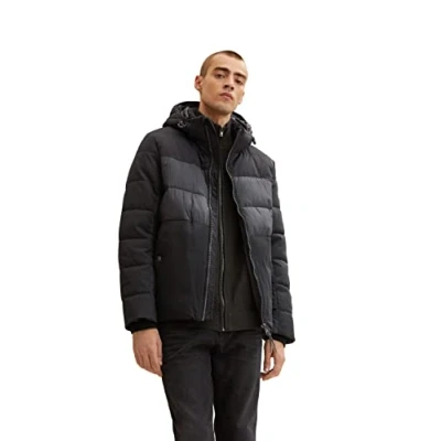 TOM TAILOR Men's 1032481 Puffer jacket with hood, 29999 Black, XL
