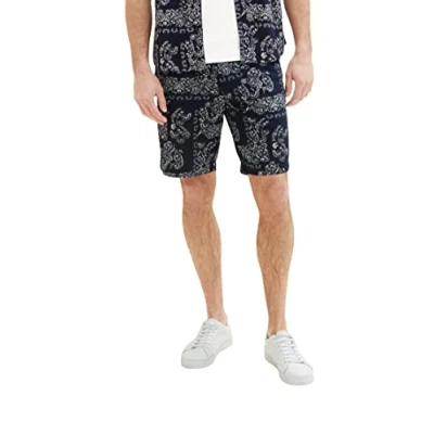 TOM TAILOR Men's 1036297 Regular fit Sweat Shorts, 31783 Navy Big Paisley Design, XL