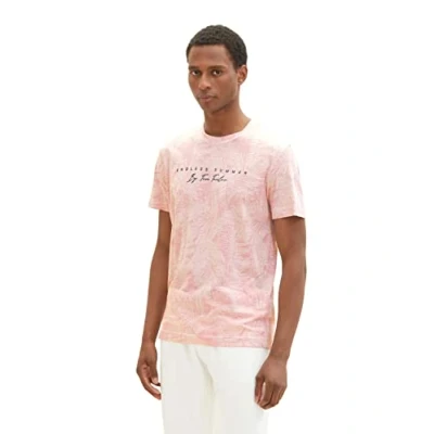 TOM TAILOR Men's 1036373 T Shirt, 31802 Pink Tonal Big Leaf Design, XXL