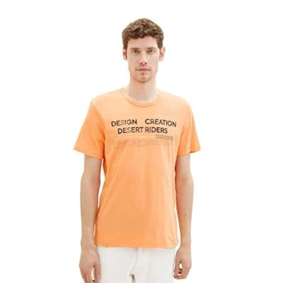 TOM TAILOR Men's 1036426 T Shirt with Print, 22195 Fruity Melon Orange, XXL