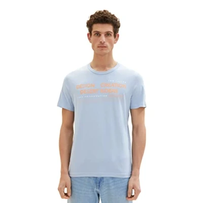 TOM TAILOR Men's 1036426 T Shirt with Print, 26320 Stonington Blue, M