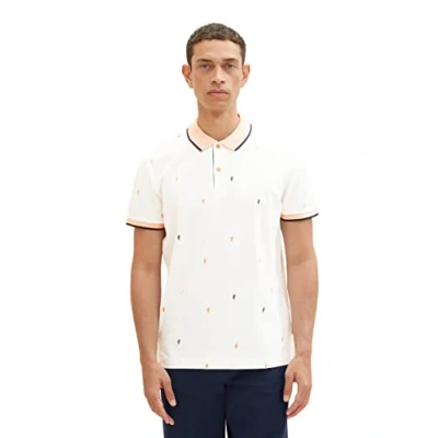 TOM TAILOR Men's 1036439 Polo Shirt with Pattern, 31844 Off White Scattered Design, M