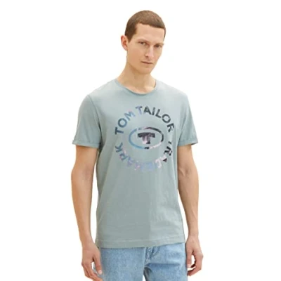 TOM TAILOR Men's 1037993 T Shirt with Print, 28129 Light Ice Blue, L