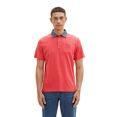 TOM TAILOR Men's 1038533 Polo Shirt with Chest Pocket, 31045 Soft Berry Red, M