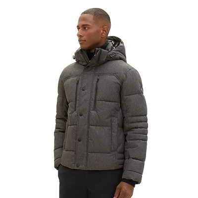 TOM TAILOR Men's 1038935 Winter Jacket with Removable Hood (Pack of 1), 28007 Grey Garment Dye Structure, XXL