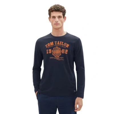 TOM TAILOR Men's 1039895 Long Sleeved T Shirt, 10302 Dark Blue, M