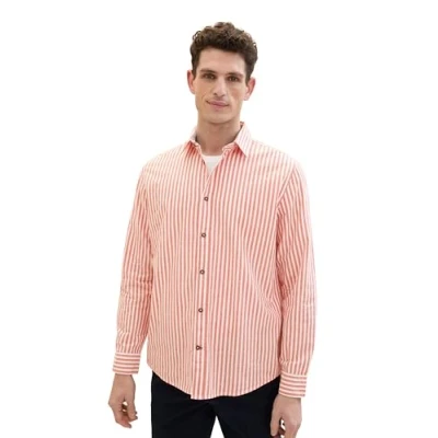 TOM TAILOR Men's 1041353 Regular fit Dobby Shirt with Stripes, 35384 Orange White, M