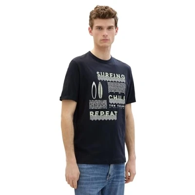 TOM TAILOR Men's 1041787 Basic T Shirt with Print, 10668 Sky Captain Blue, XXL
